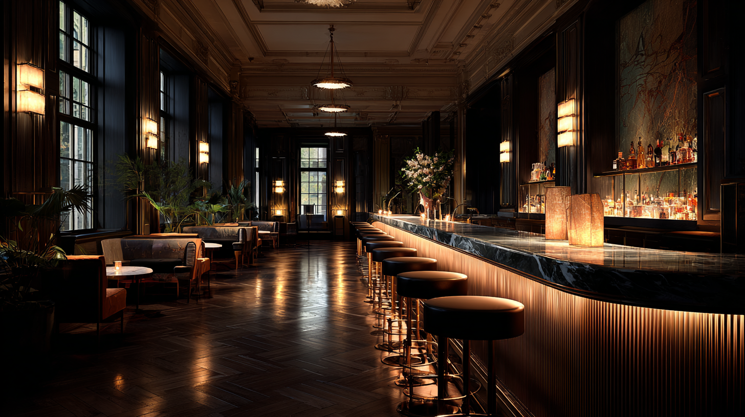 These details don’t illuminate a room; they compose it. They give the shadows somewhere to settle and create that unmistakable hotel-bar presence — intimate, warm, and quietly alive.